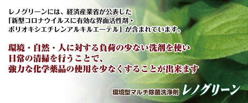 ■2020年12月15日 マルチユースにレノグリーンの作り方の情報追加しました。 ■2020年5月22日 レノグリーンの成分が新型コロナウィルスに効果があると確認されました。■レノグリーンを使用したクジラの骨格標本製作に関する写真資料を掲載しました。■2017年12月13日西日本新聞朝刊に、レノグリーンが掲載されました。■ATPふき取り検査が、2014年9月14日(日)19:00〜放送のフジテレビ「クイズ!それマジ!?ニッポン」で紹介されました。■ATPふき取り検査は、8月31日放送のTBS「健康カプセル!ゲンキの時間」(食中毒についての放送)で紹介されました。